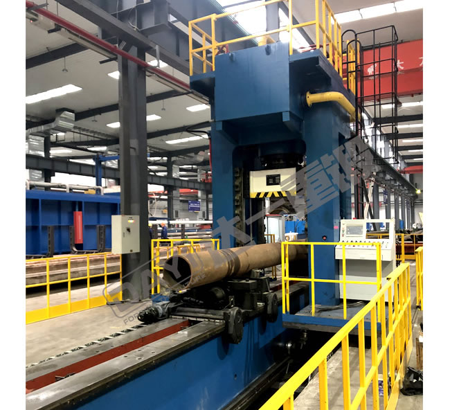 管材校直液壓機是針對大直徑無縫管校直工藝開發(fā)的校直專用設備,主要用于管材、棒材的校直工藝,同時可配置自動化測量機構。