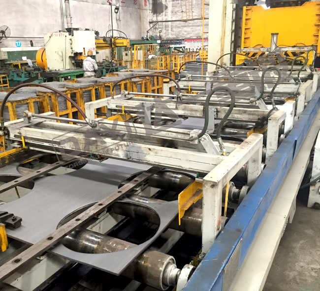 汽車鋼圈落料生產線是我公司針對汽車鋼圈行業定制開發的落料專用生產線,主要應用于汽車鋼圈行業的落料工藝,生產線包含落料專用液壓機、全自動滾輪送料裝置、步進式伺服送料機械手等高度機械化的裝置,可以完成送料、對中、位置檢測、落料、成品鋼圈輸送、廢料回收等工序,非常人性化,同時也大幅提高了生產效率。